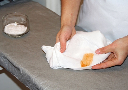 Para retirar manchas de molho de tomate, aplique no local uma colher (sopa) de amido de milho dissolvido em três colheres (sopa) de água morna. Deixe secar bem e retire com uma escova. Depois lave normalmente.