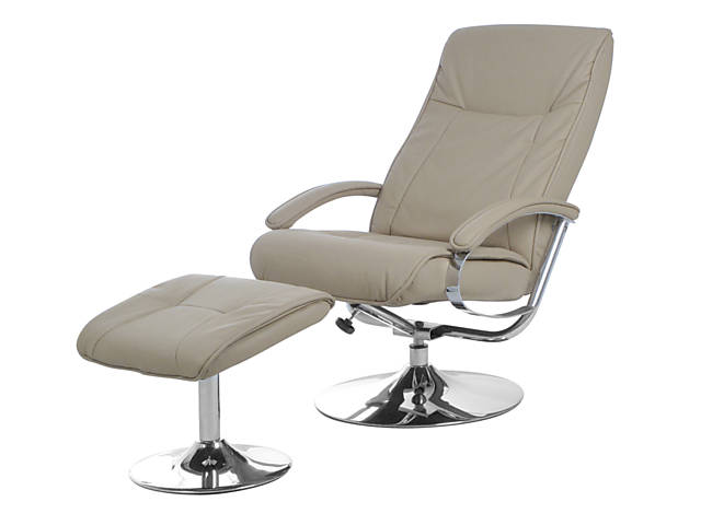 Poltrona giratória com base de aço e acabamento cromado revestida em couro sintético. Disponível nas cores preta e bege. R$ 1.490 na Tok&Stok - www.tokstok.com.br